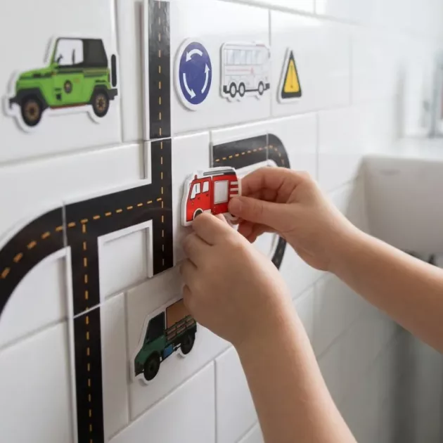 Verwandle jedes Bad in ein spielerisches Abenteuer mit aufregenden Badfliesen-Stickern. Kreative Fahrzeuge, Straßen und Schilder haften leicht an den Fliesen und regen zu unendlichen Geschichten an. Kinder bauen ihre eigene Stadtszene, während Sie sich entspannen können – baden ohne Chaos.
