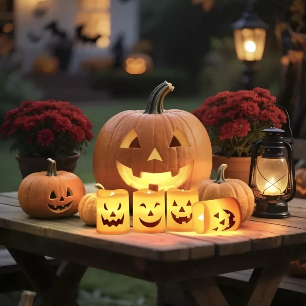 Verzaubernde Atmosphäre - Sanftes orangefarbenes Leuchten schafft eine freundliche Umgebung für alle. Lächelnde Geistergesichter sorgen für Begeisterung bei jedem Gast.