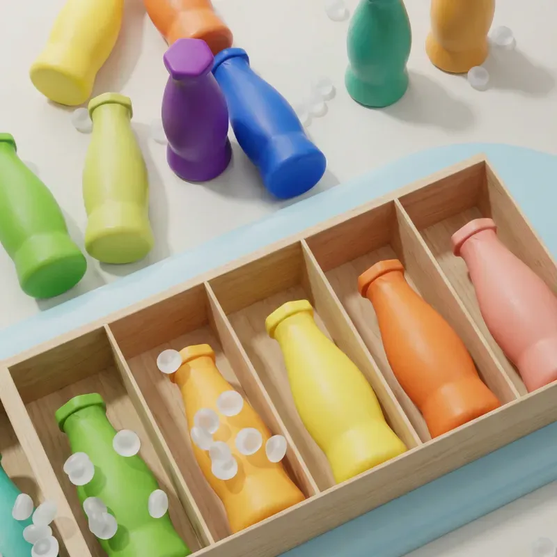 Die leuchtenden Teile sind perfekt für meine Vorschülerin. Sie findet immer die passenden Getränke und ruft die Farben mit Freude aus.