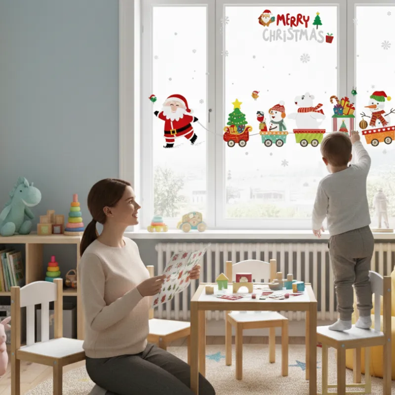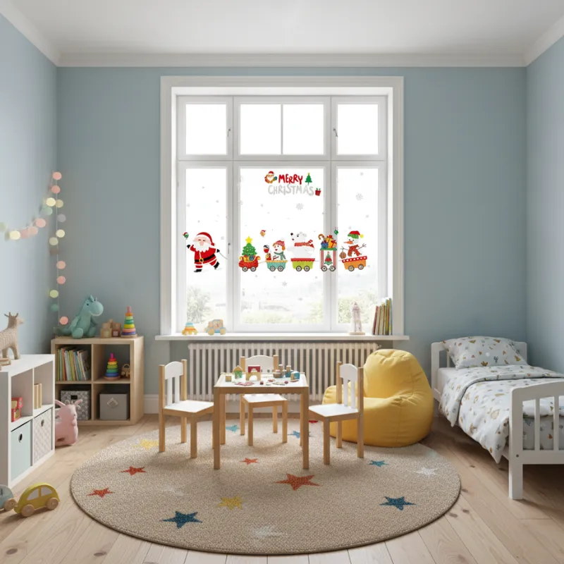 Das Kinderzimmer meiner Kinder wurde nach dem Bekleben zu einem festlichen Wunderland. Sie hielten den ganzen Dezember, ohne Rückstände zu hinterlassen. Super spaßige Familienaktivität.
