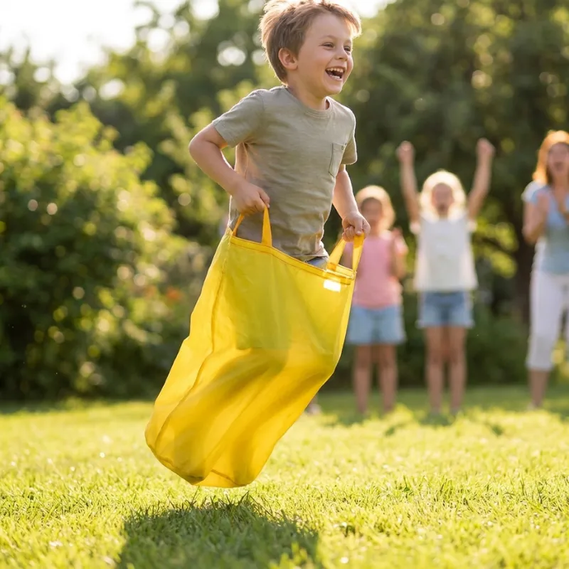 Ich habe den Sack für das Schulfest meiner Tochter gekauft, und er kam richtig gut an. Die Kinder haben sich eigene Teamnamen ausgedacht, sich laut angefeuert und hatten sichtbar Spaß. Meine Tochter war danach ganz stolz und hat ihren Großeltern gleich gezeigt, wie gut sie schon hüpfen kann.