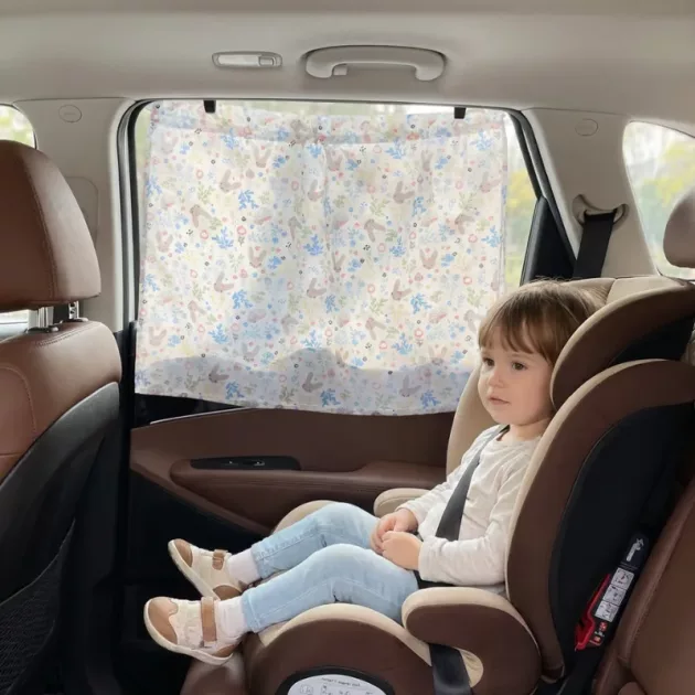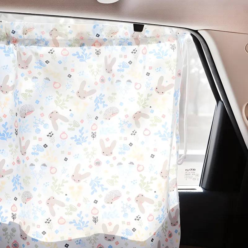 Wir befestigen den Vorhang an der hinteren Tür für die Fahrten zur Schule. Er ist schnell angebracht, hält gut, und meine Tochter zeigt gerne auf die verspielten Bilder.