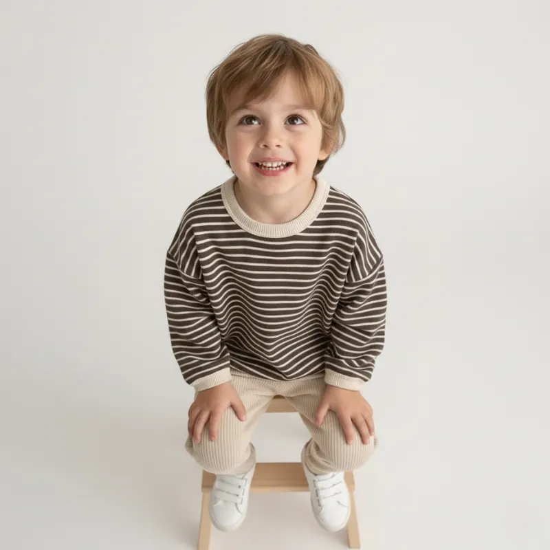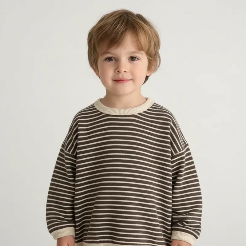 Niedliches Baumwoll-Sweatshirt Gestreiftes Langarmshirt für Kinder