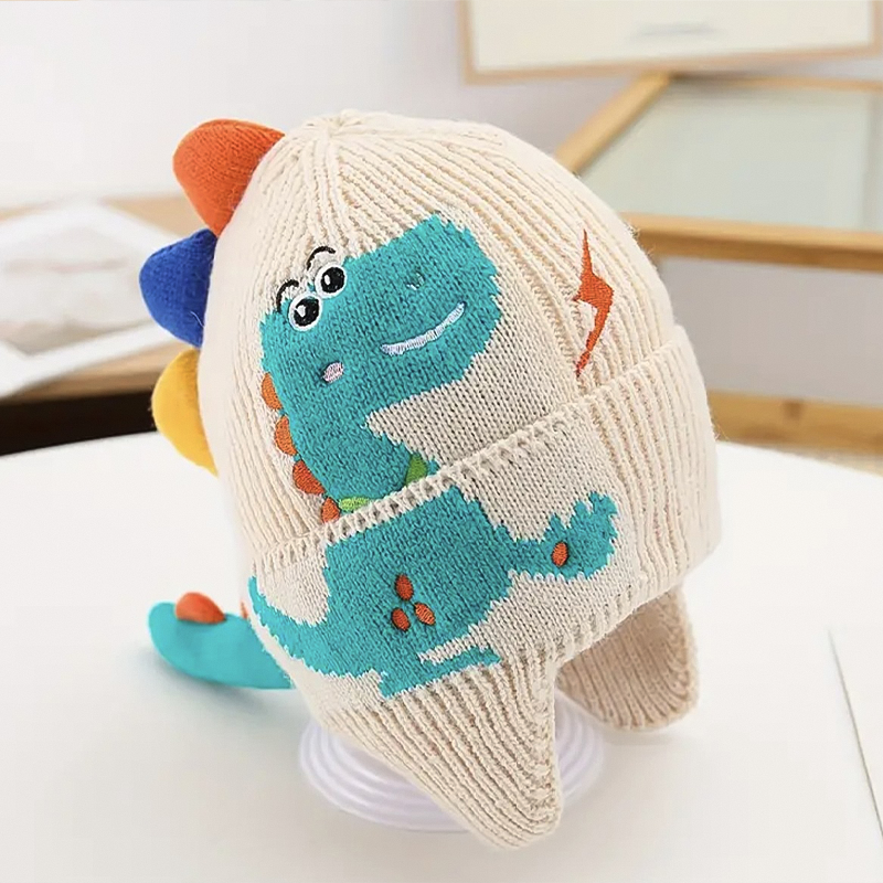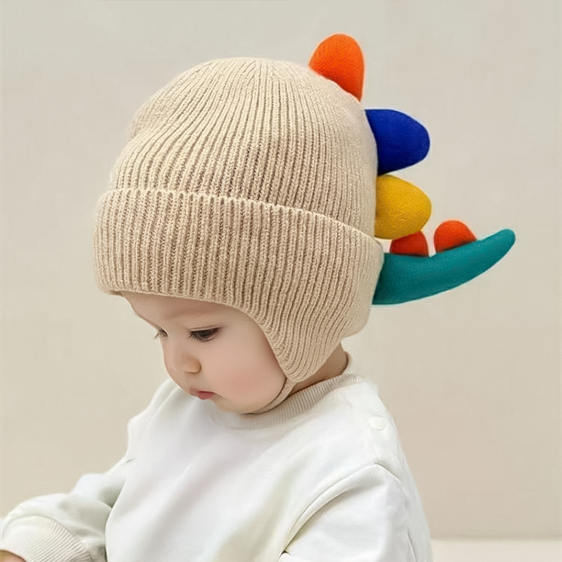 Diese Dino-Mütze ist immer ihre erste Wahl. Sie ist bunt, macht Spaß und verrutscht nie auf ihrem Kopf. Lässt sich gut waschen nach matschigen Tagen im Park.