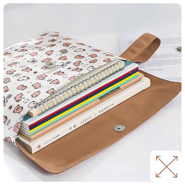 Meine Blätter und Arbeitshefte bleiben sauber und ordentlich in dieser wirklich süßen Tasche. Der Verschluss hält alles drinnen, selbst wenn ich es eilig habe.