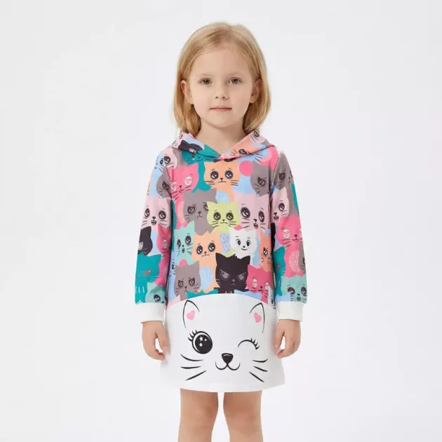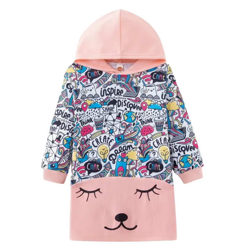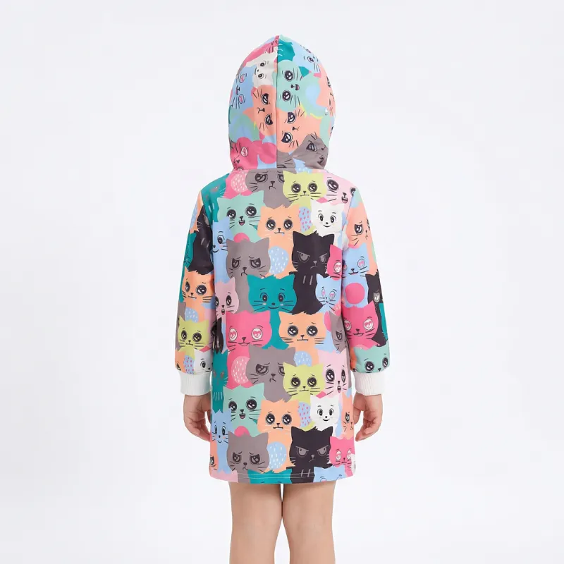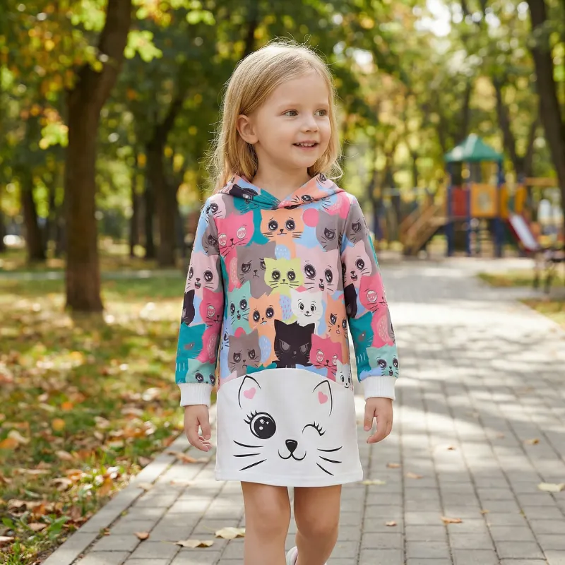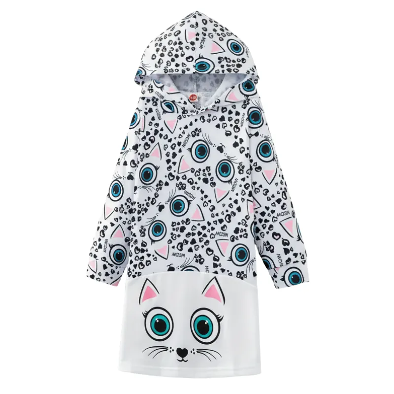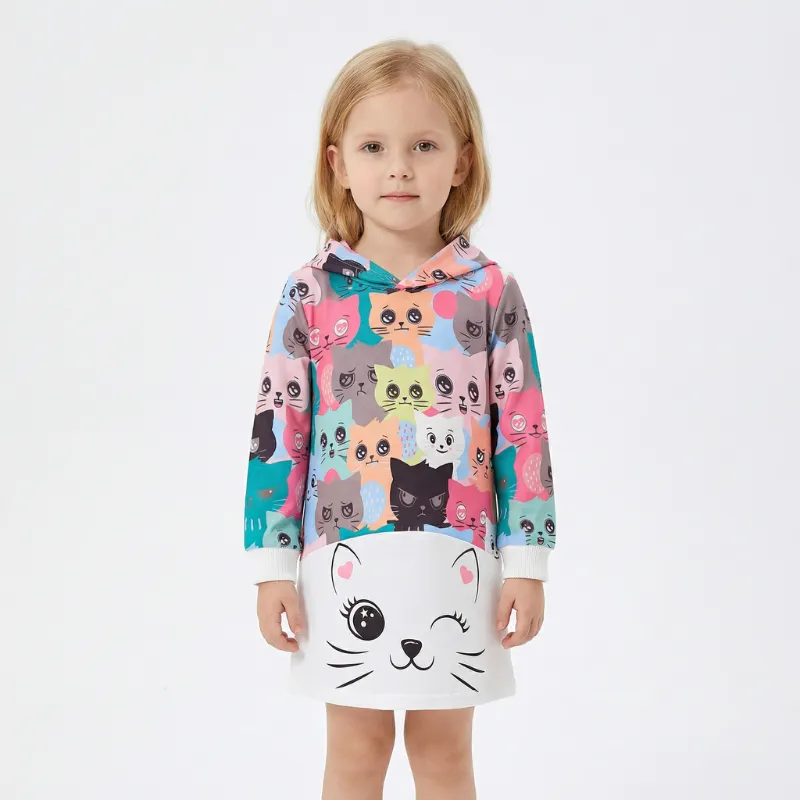 Niedliches, leichtes Langarm-Kapuzenkleid für Kinder