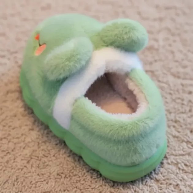 Weich gepolstert, warm und lustig! Die Hausschuhe halten die Zehen meiner kleinen Schwester den ganzen Tag schön warm und lassen sich leicht anziehen.