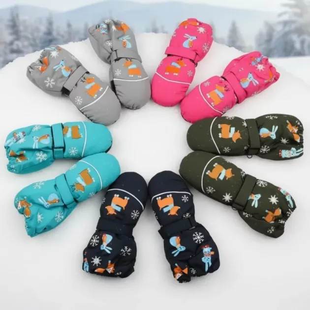 Jeder Elternteil wünscht sich ein gutes Gefühl bei winterlichen Abenteuern. Diese bunten Fäustlinge schützen draußen vor Wind, Schnee und Regen. Weiche Materialien innen halten kleine Finger den ganzen Tag warm.