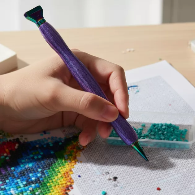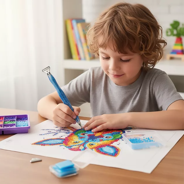 Mit meinem neuen Stift setze ich die Steinchen super schnell ein. Es macht Spaß, die Farben zu mischen, und meine Mutter sagt, ich bin danach viel besser gelaunt!