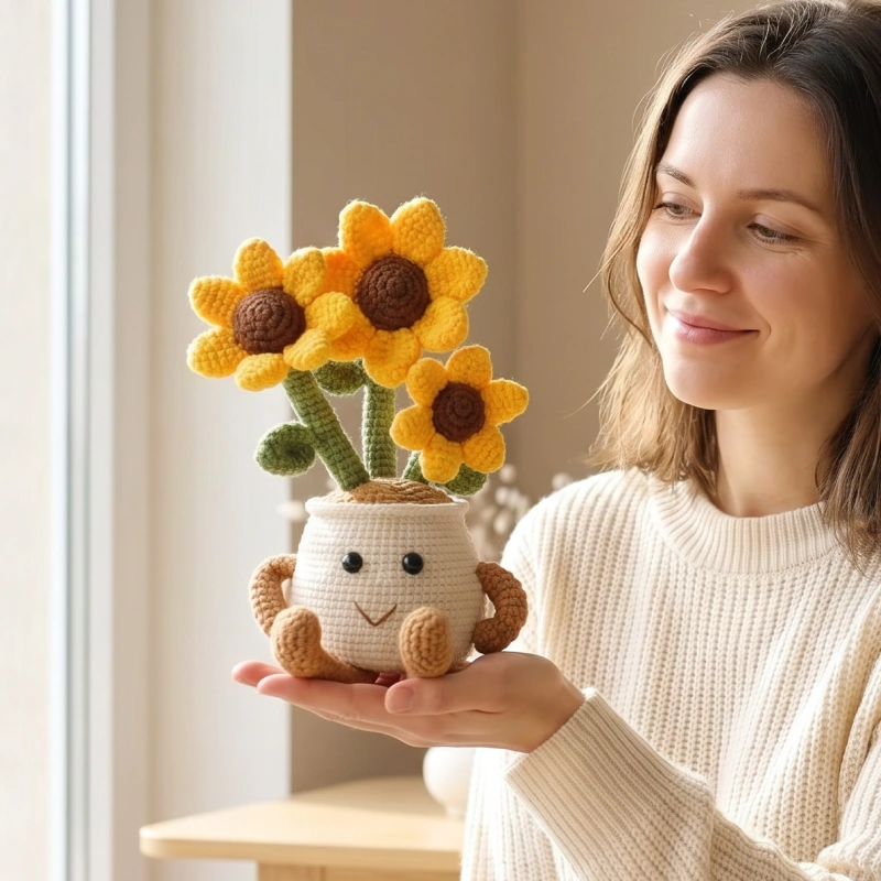 Ich habe das Blumentopf‑Set für meine 8‑jährige gekauft. Sie ist sonst schnell frustriert, aber die klaren Bilder und die weiche Wolle haben sie ruhig gehalten und ihr Selbstvertrauen wirklich gestärkt.