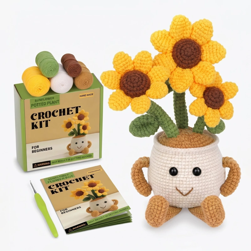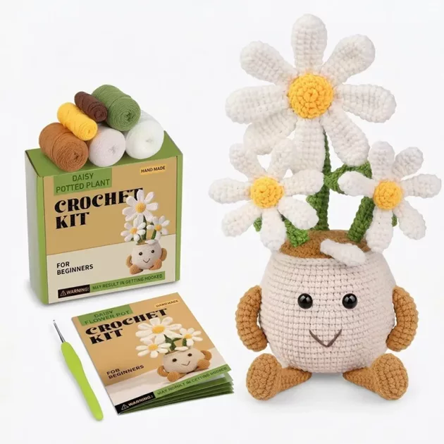 Habe dieses süße Häkelset für meine 9‑jährige gekauft. Die Bilder im Heft haben sie ruhig und konzentriert gehalten, und sie zeigt jedem voller Stolz ihren kleinen Blumentopf.