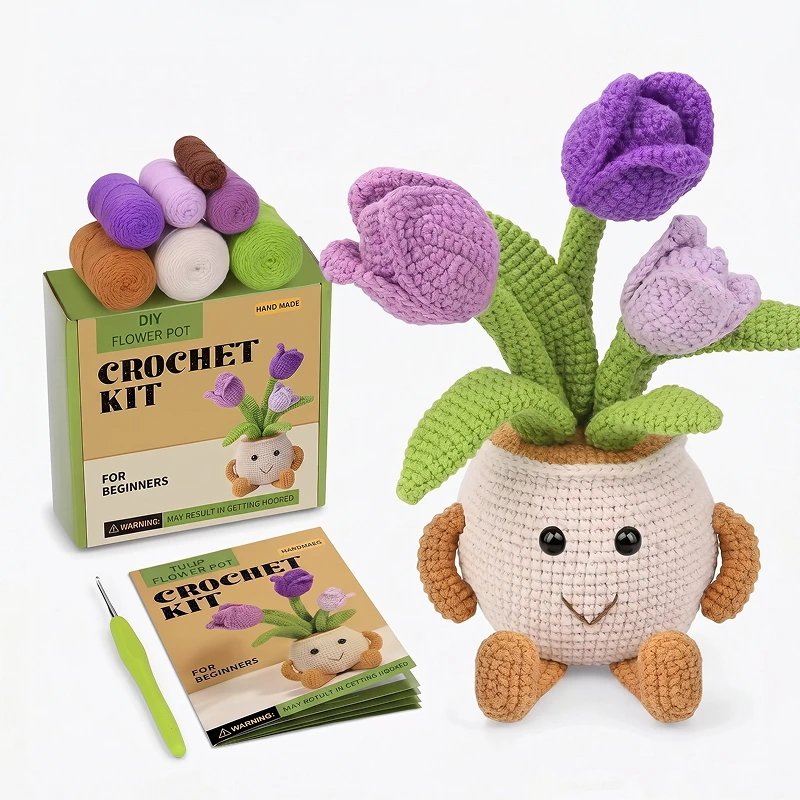 DIY Blumen­topf-Häkelset für Anfänger mit Garn