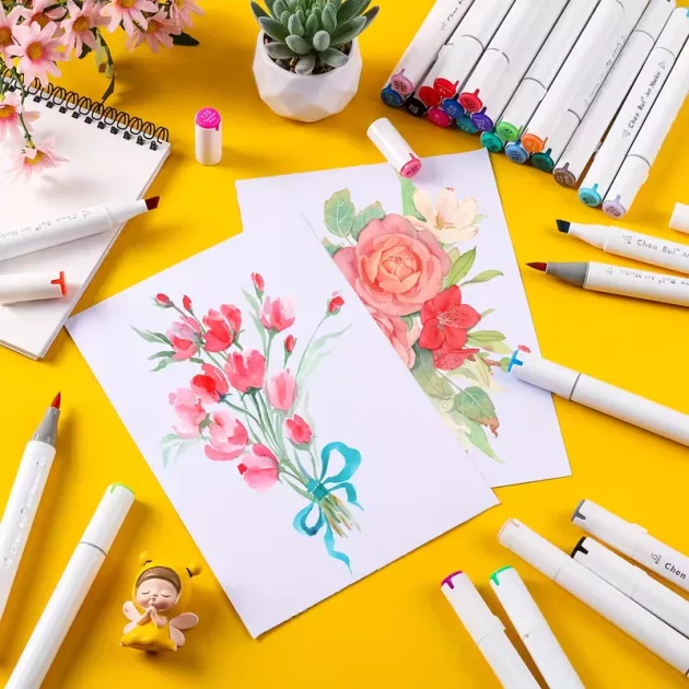 Diese Marker sind großartig – mein Skizzenbuch ist voll mit kräftigen, leuchtenden Zeichnungen. Ich benutze beide Spitzen oft und sie drücken nie durch das Papier.
