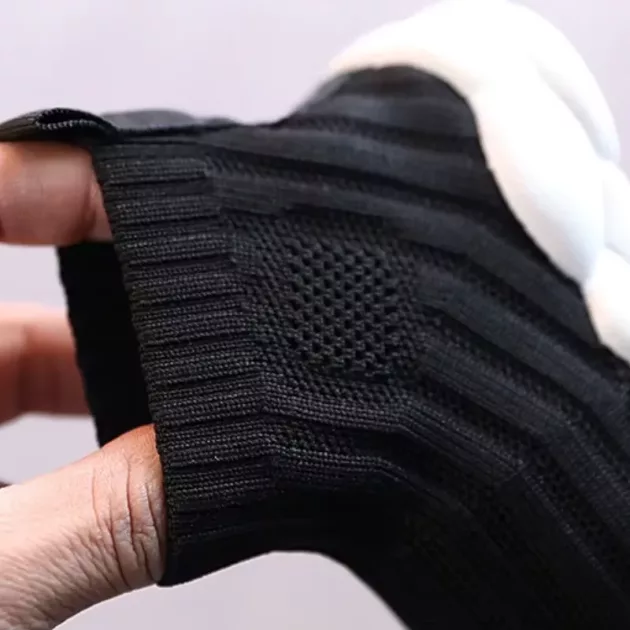 Das elastische Socken-Design ist genial. Mein Sohn findet sie cool und ich mag, dass sie auch an seinen breiten Füßen passen.