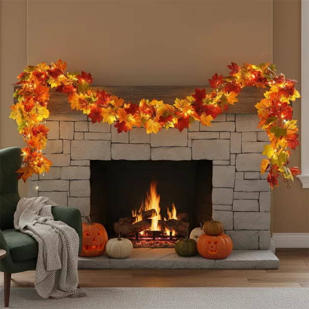 artificial leaf decor, autumn home decor, fake autumn leaves, leaf garland
