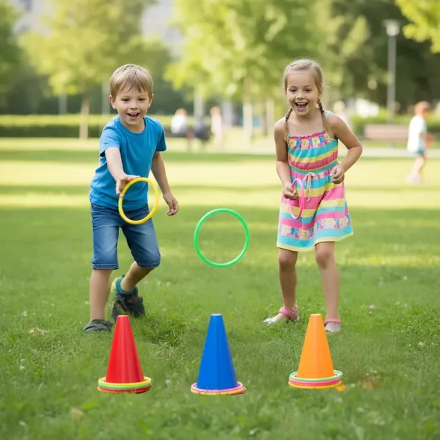 Ich liebe es, meine Kinder beim Ringwurfspielen statt beim Fernsehen zu sehen. Sie versuchen, sich gegenseitig zu übertreffen, und helfen den Kleineren beim Regeln lernen.