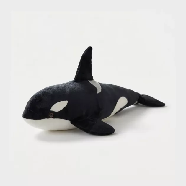 Der schwarze Wal ist bei uns schnell zum liebsten Kuscheltier geworden. Ich habe ihn für meinen kleinen Cousin geholt, und seitdem schleppt er ihn überall mit hin. Er ist schön groß, sodass wir ihn sogar zusammen in den Arm nehmen können.