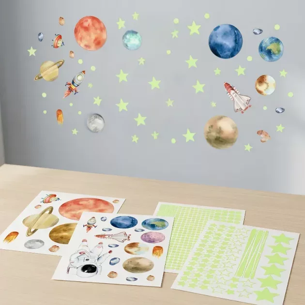 Diese Weltraumsticker haben das Zimmer meines Kindes in eine Fantasieg alaxie verwandelt. Sie liebt das Leuchten.