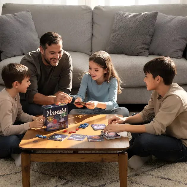 Strategiespiele sind manchmal verwirrend, aber Hanabi bleibt einfach und schnell. Unsere Familie liebt es, das Rätsel gemeinsam zu lösen.