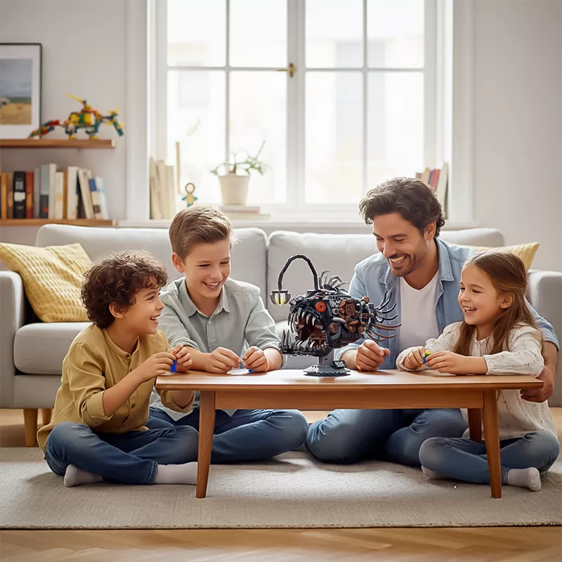 Es ist jetzt Teil unserer täglichen Spielzeit. Der Laternenfisch bringt alle dazu, noch mehr Unterwassertiere bauen zu wollen.