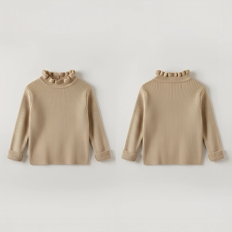 Meine Tochter liebt ihren Strickpullover! Er ist so weich, hält sie im Park warm und passt perfekt zu ihrem Stil. Er juckt sie nie, was super ist.