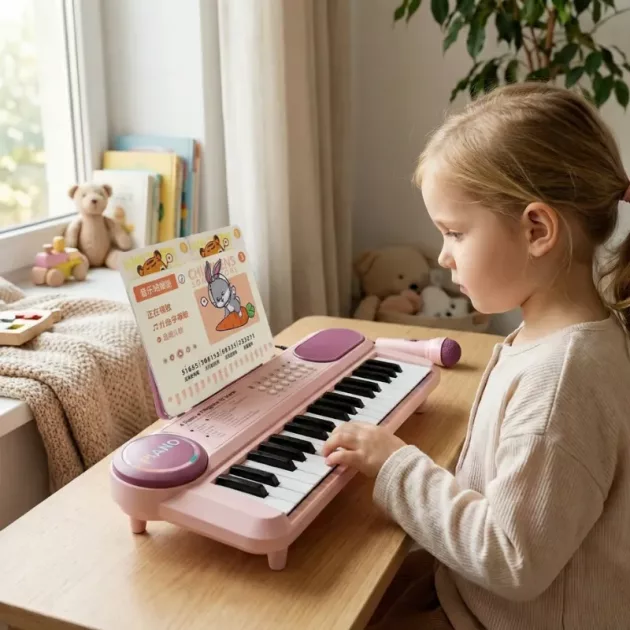 Ich bin überhaupt nicht musikalisch, aber dieses Klavier macht es leicht, mit meiner Tochter mitzuspielen. Wir folgen gemeinsam dem Notenblatt und klatschen, wenn sie ein Lied richtig schafft.