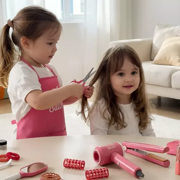 Das Set kommt mit vielen Sachen zum Teilen. Durch das Spielen als Friseur spricht mein Kind mehr und bekommt mehr Selbstbewusstsein.