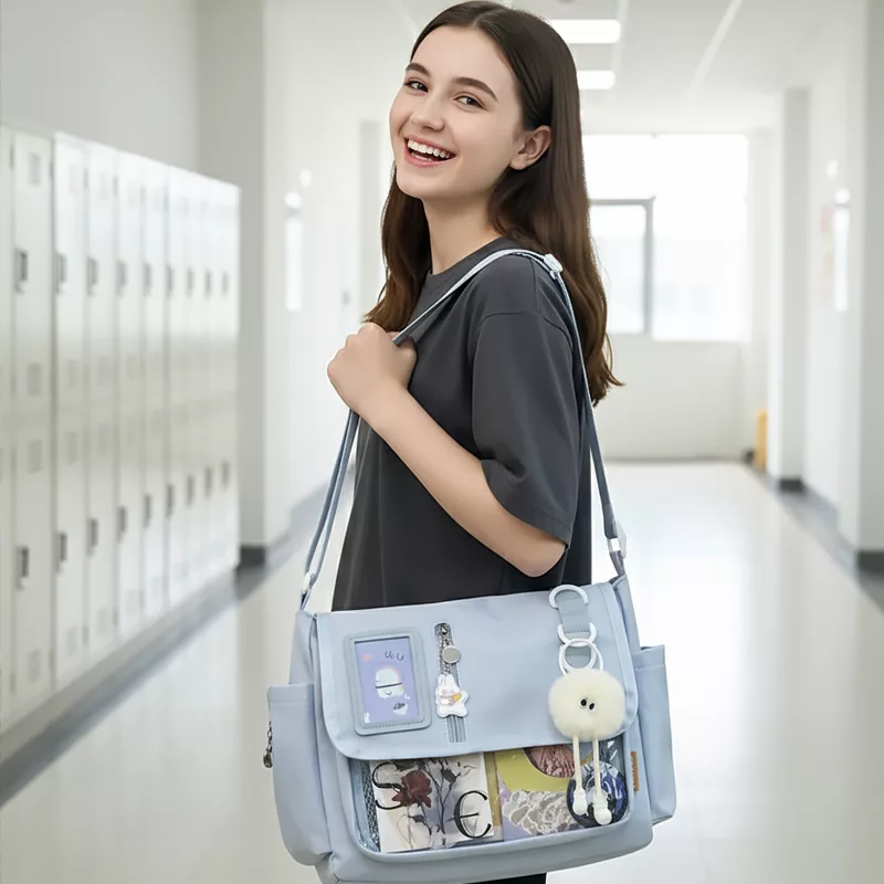 Geräumige Aufbewahrung - Mehrere Taschen halten Bücher, Snacks und Schreibwaren getrennt.