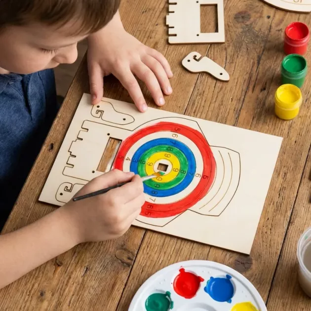 Die Holzpistole war eine coole Herausforderung nach der Schule. Die Farben sind leuchtend und sicher. Ich habe gelernt, Anleitungen zu folgen, und es hat mich sinnvoll beschäftigt.