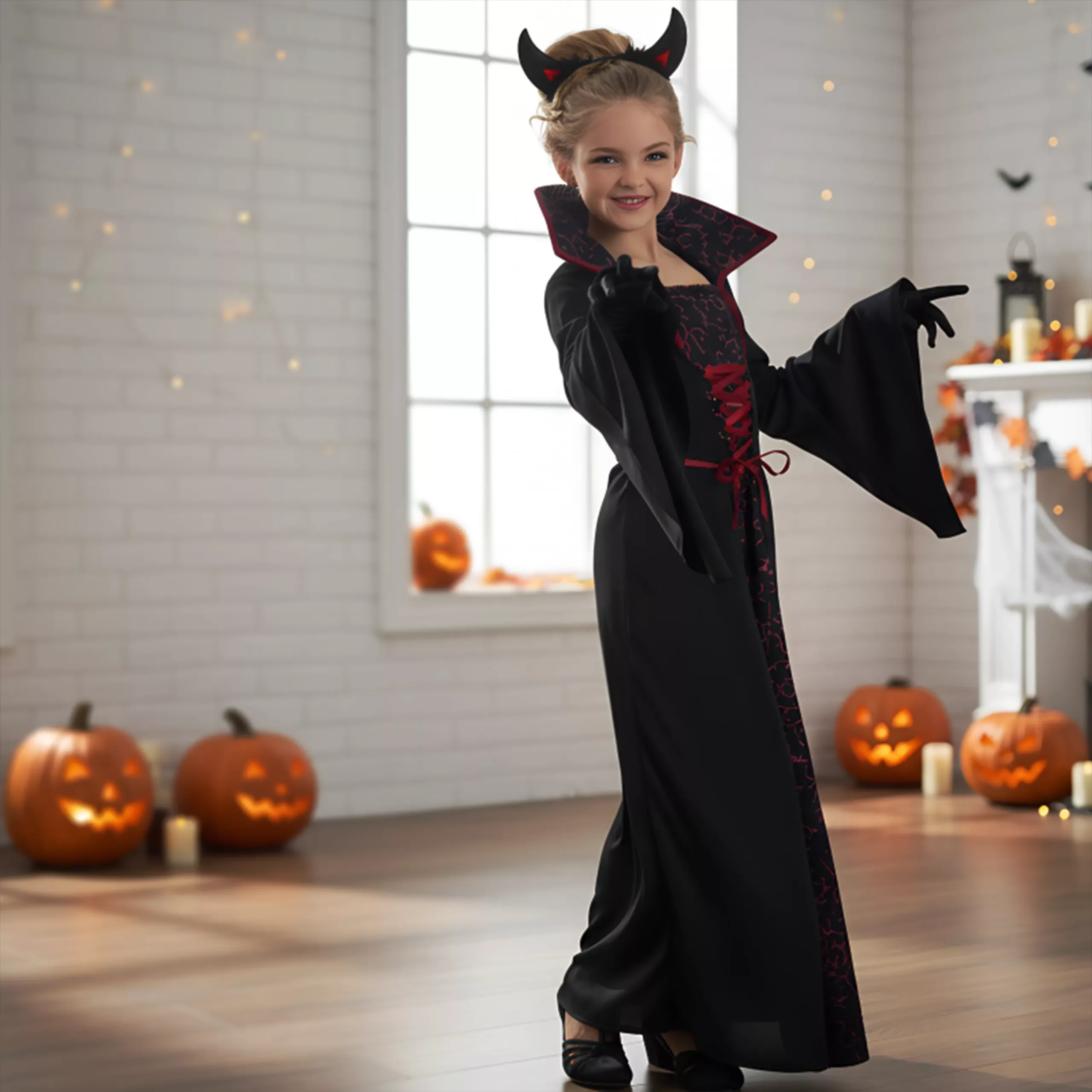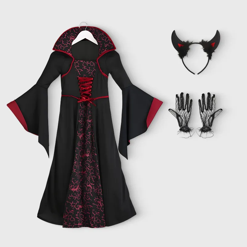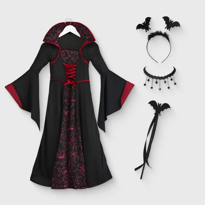 Vampir-Outfit Kostüm Gothic Kleid für Mädchen