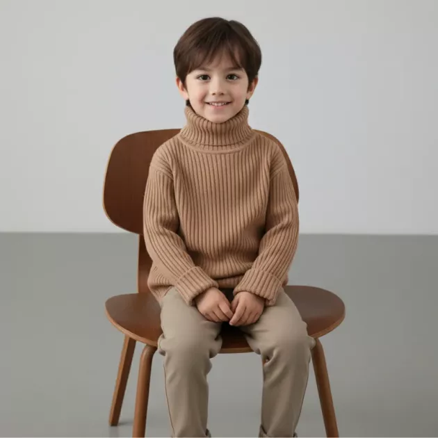 Warmer Strickpullover, Oversized Rollkragen Grobstrick für Kinder