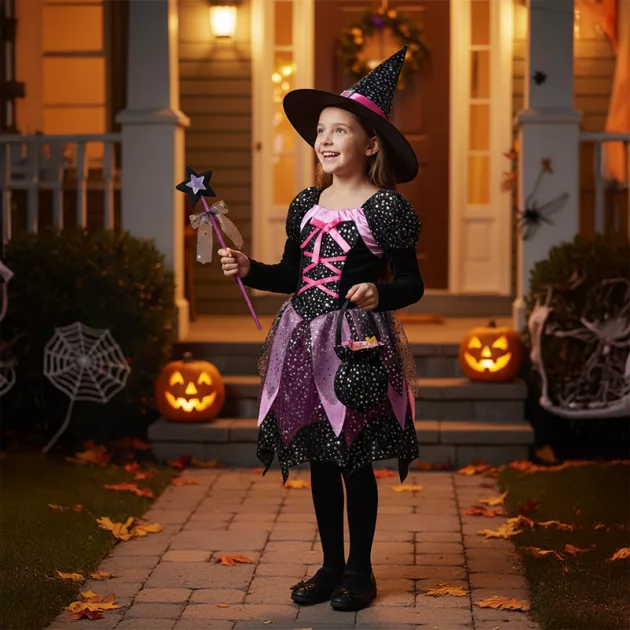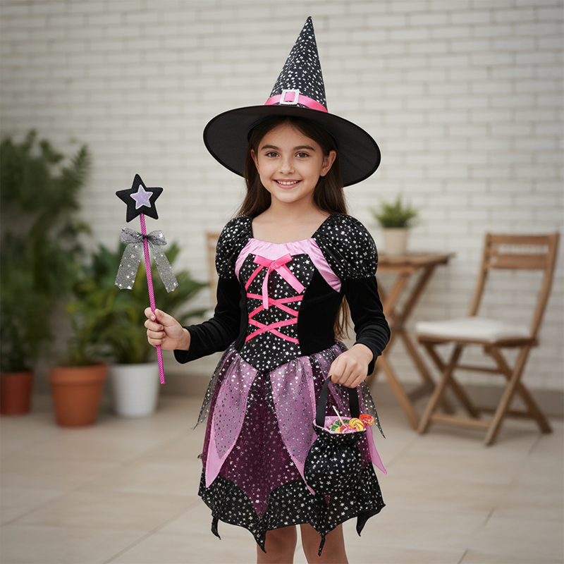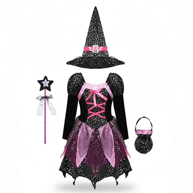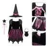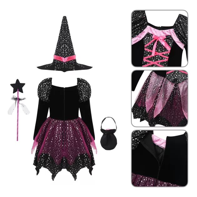 Zauberer Kostüm Hexen Outfit Set mit Zauberstab für Mädchen