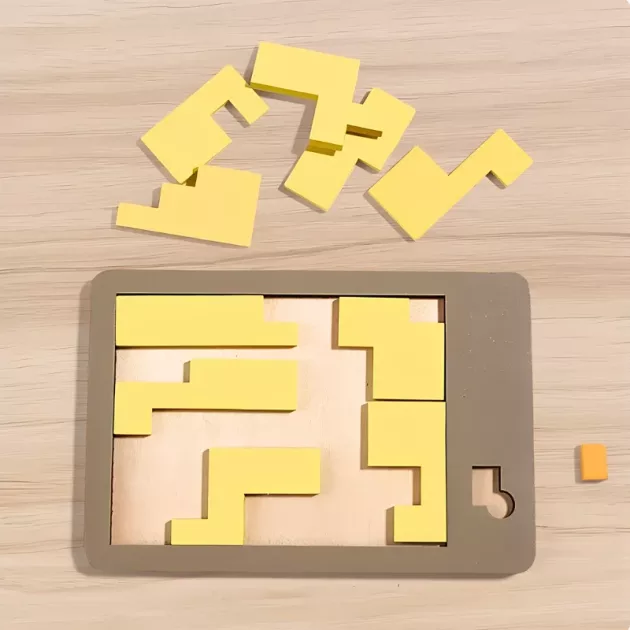 Meine Mutter hat dieses Holzpuzzle für Regentage gekauft. Nun habe ich nichts mehr dagegen, drinnen zu bleiben! Ich werde richtig kreativ mit den Formen.