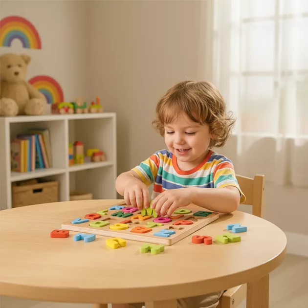 Die großen Buchstaben sind perfekt für kleine Hände. Mein Sohn lernt, ohne sich zu langweilen, und es ist immer wieder einsatzbereit.